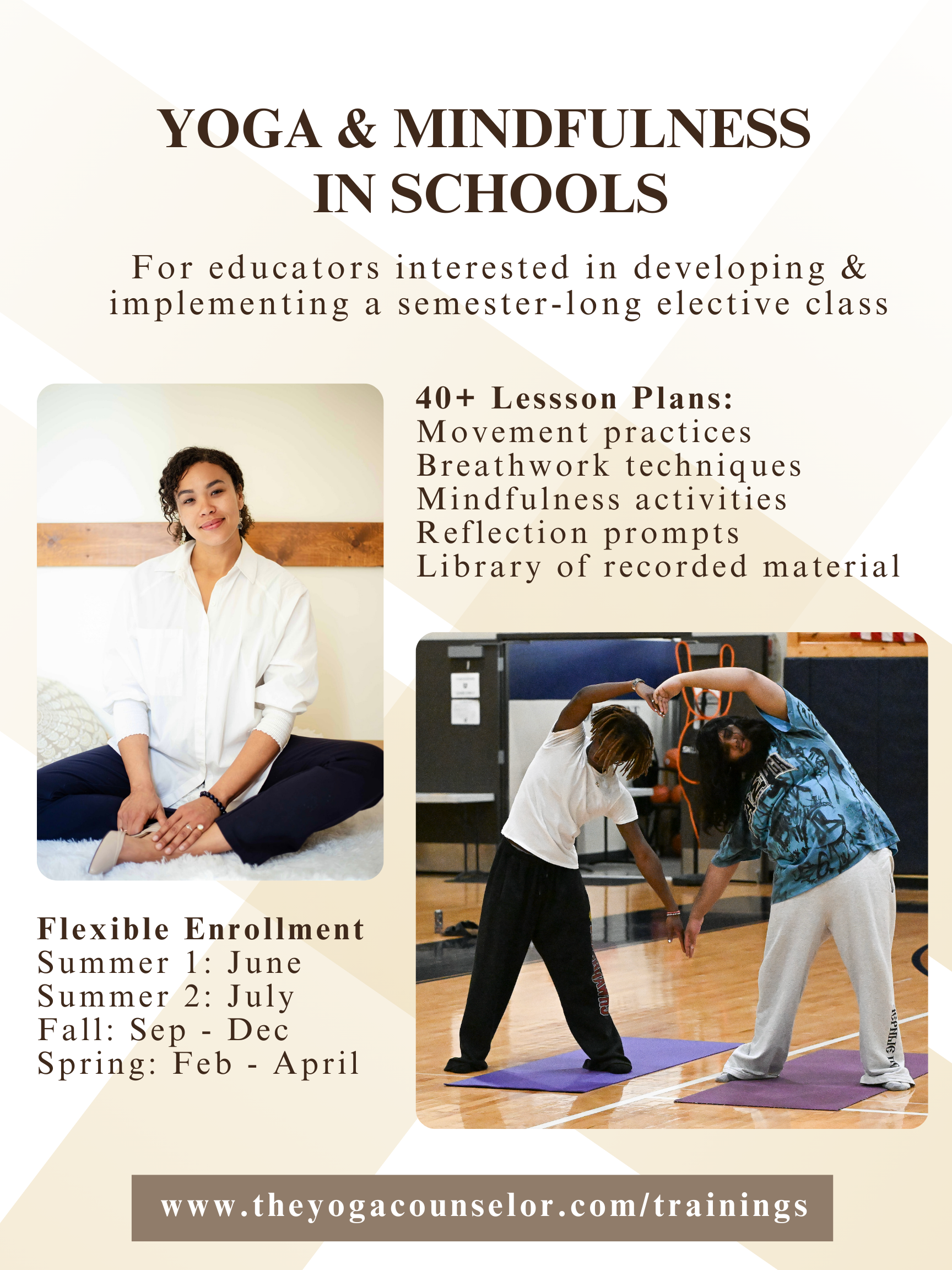 This training is designed to support educators in developing and implementing a Yoga & Mindfulness elective or wellness-based course within their own school communities. Participants will learn how to structure a developmentally appropriate, trauma-informed curriculum that integrates: